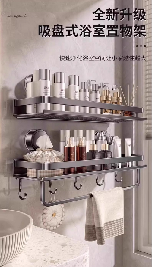 百悍吸盘置物架卫生间浴室免打孔神器厕所洗漱台洗手间挂墙上收纳的描述