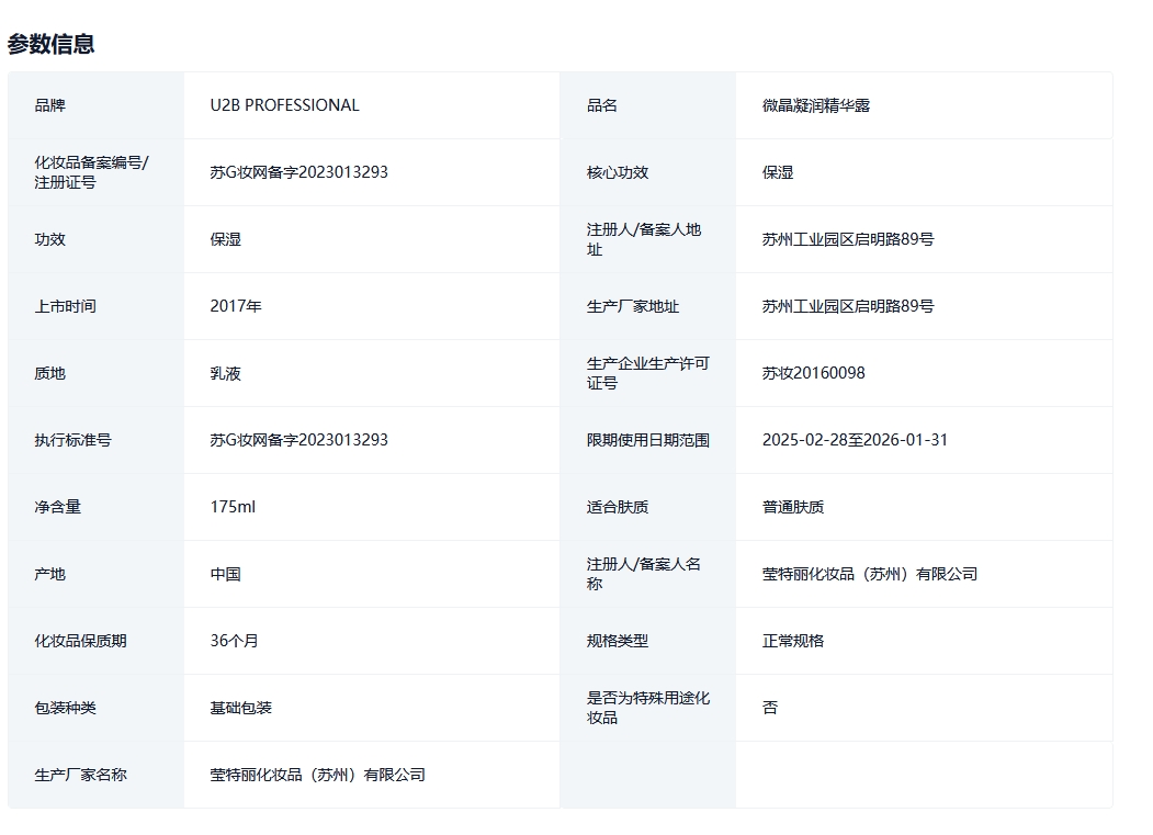U2B PROFESSIONAL优图碧彩妆微晶凝润精华露莹润大微瓶175ml的描述