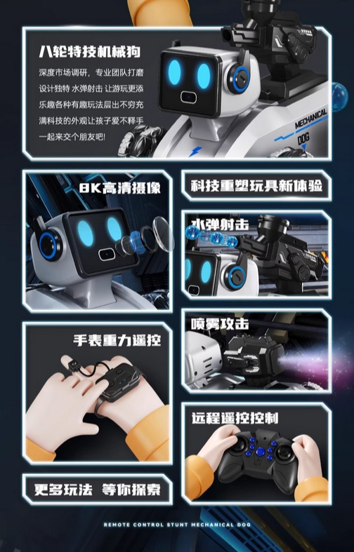 智能机器狗遥控车玩具八轮儿童手势三感应电动汽车男孩礼物机器人