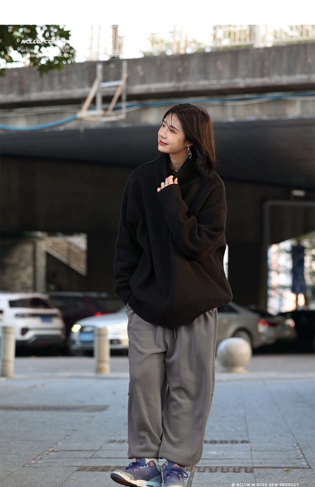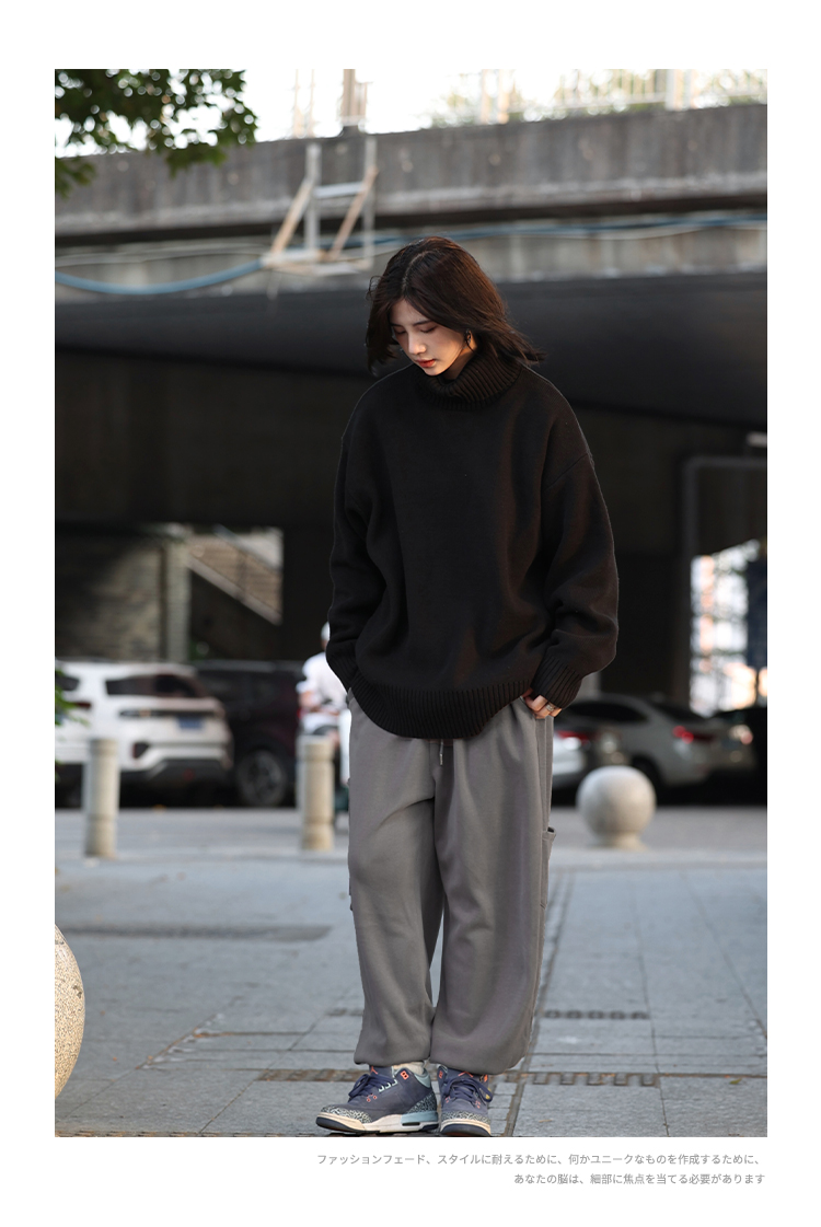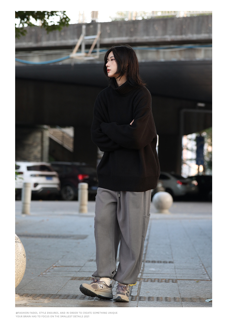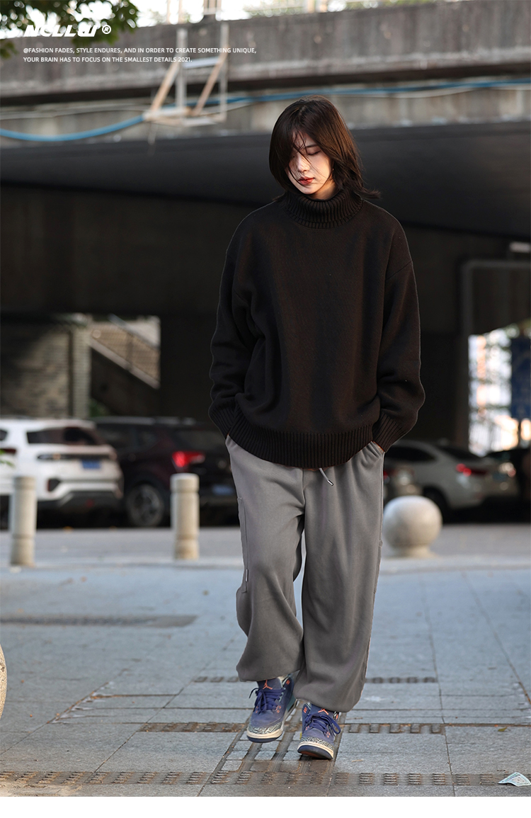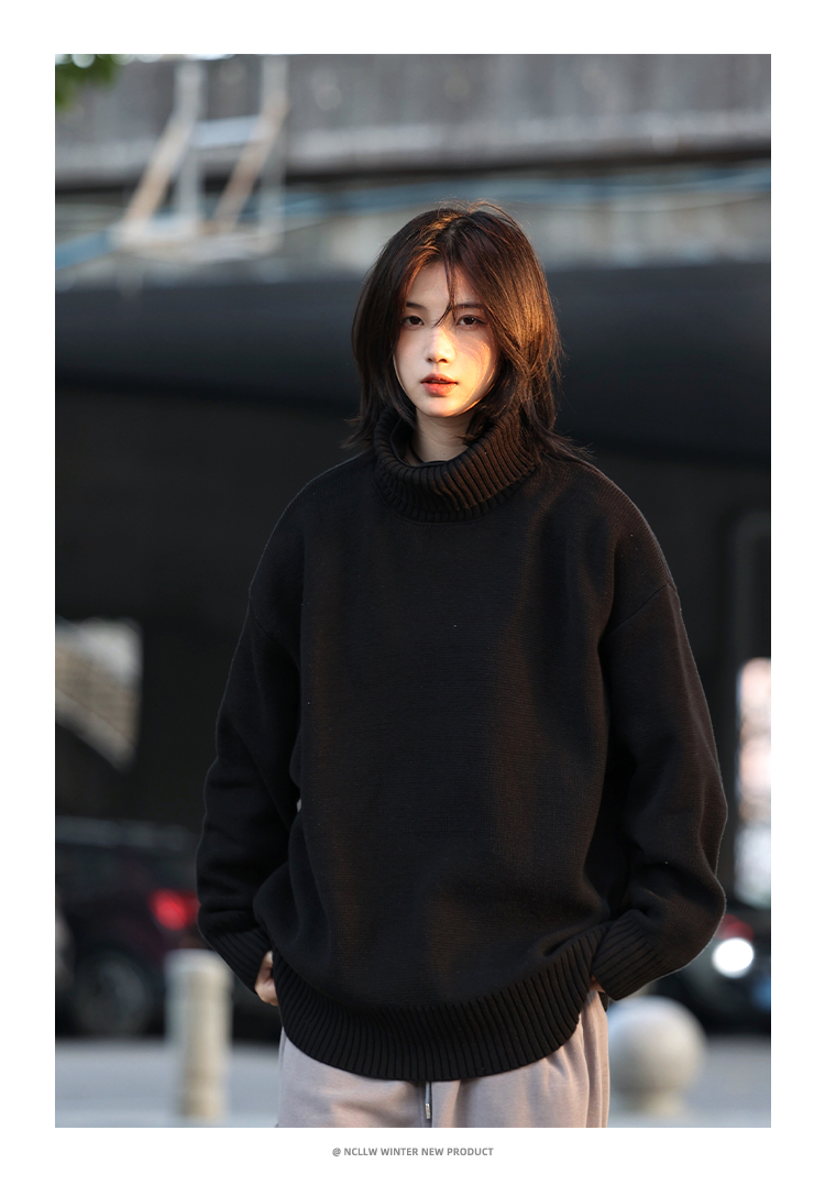 你初恋老王高领毛衣男针织打底衫长袖宽松复古纯色百搭情侣同款女的描述
