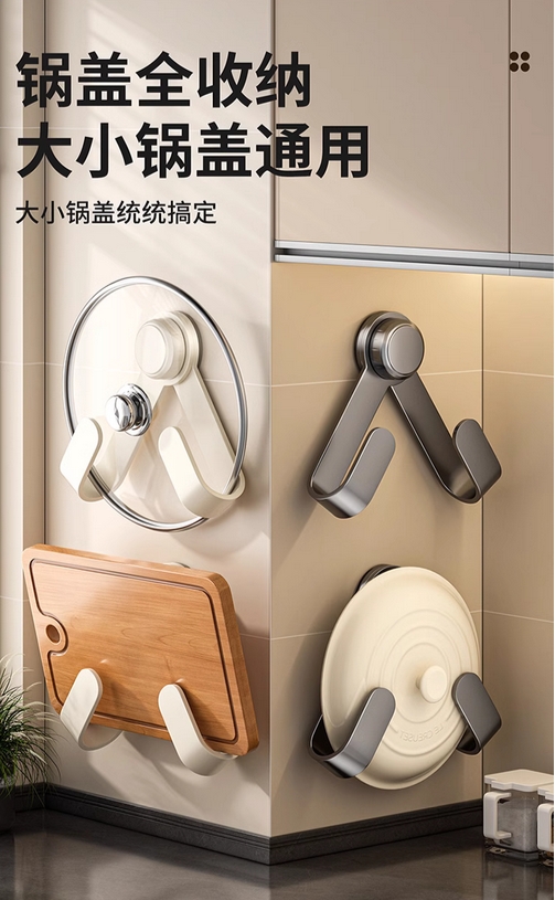 吸盘锅盖架壁挂免打孔多功能厨房置物架子菜板放置砧板架收纳神器